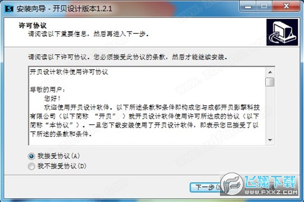 1、打开软件V1.2.1setup.exe软件直接安装,显示开贝设计软件使用许可协议;