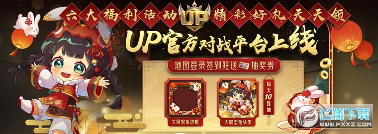 活动持续期间登录UP官方对战平台将获得海量金币,累计登录7天将赠送“大展宏兔”专属边框!