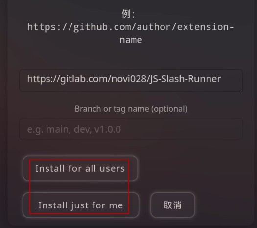 4、输入粘贴地址,然后点击选项开始安装。
